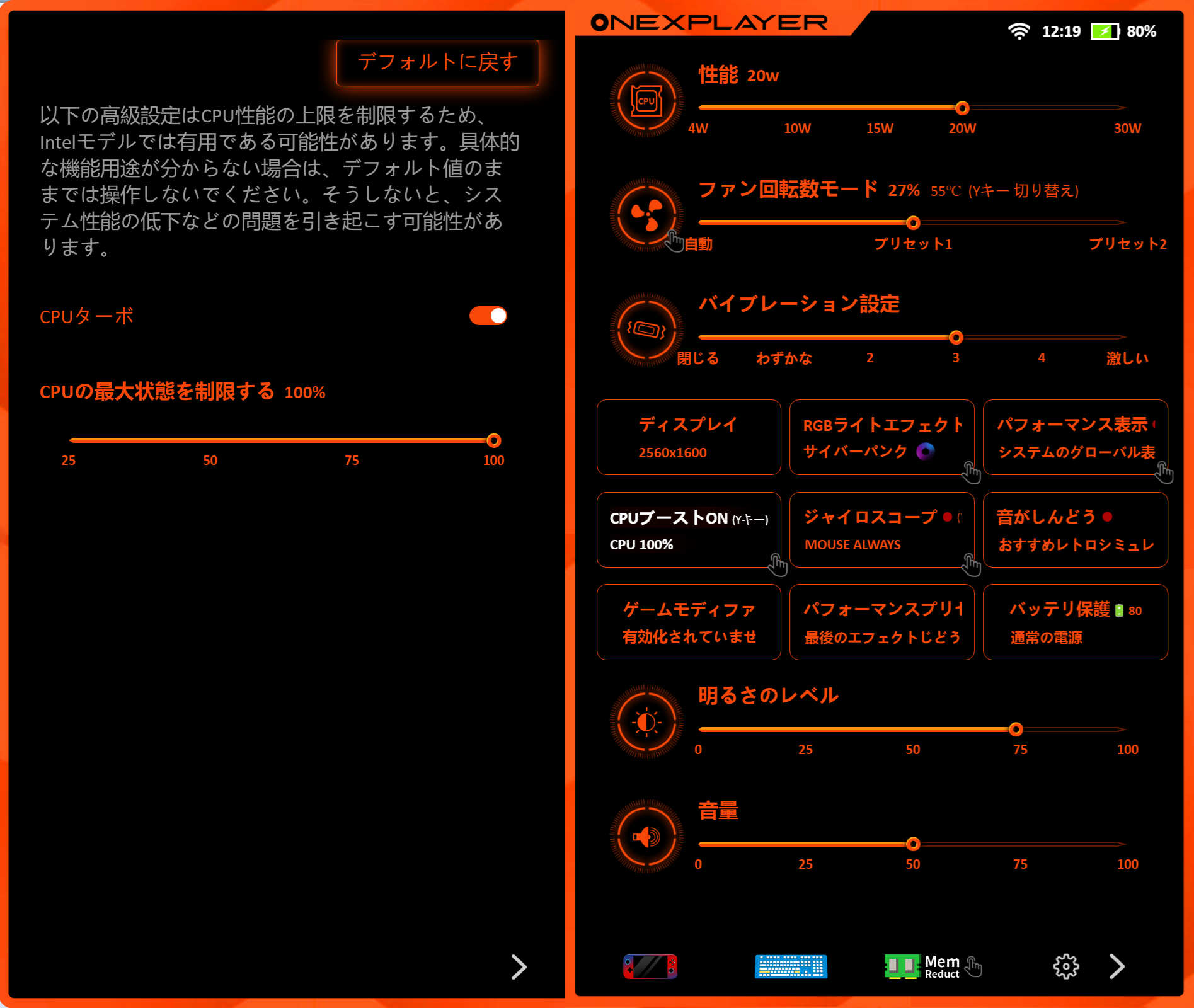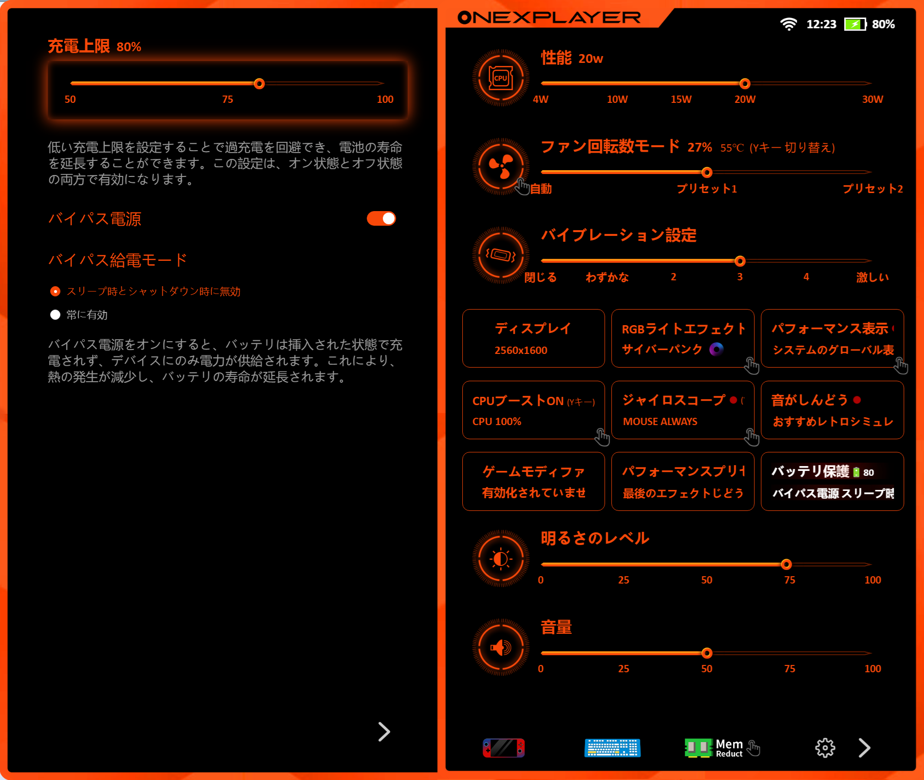 この記事はONEXPLAYER X1 AMD EditionにONEXCONSOLE v0.8.10をインストールして作成しています。