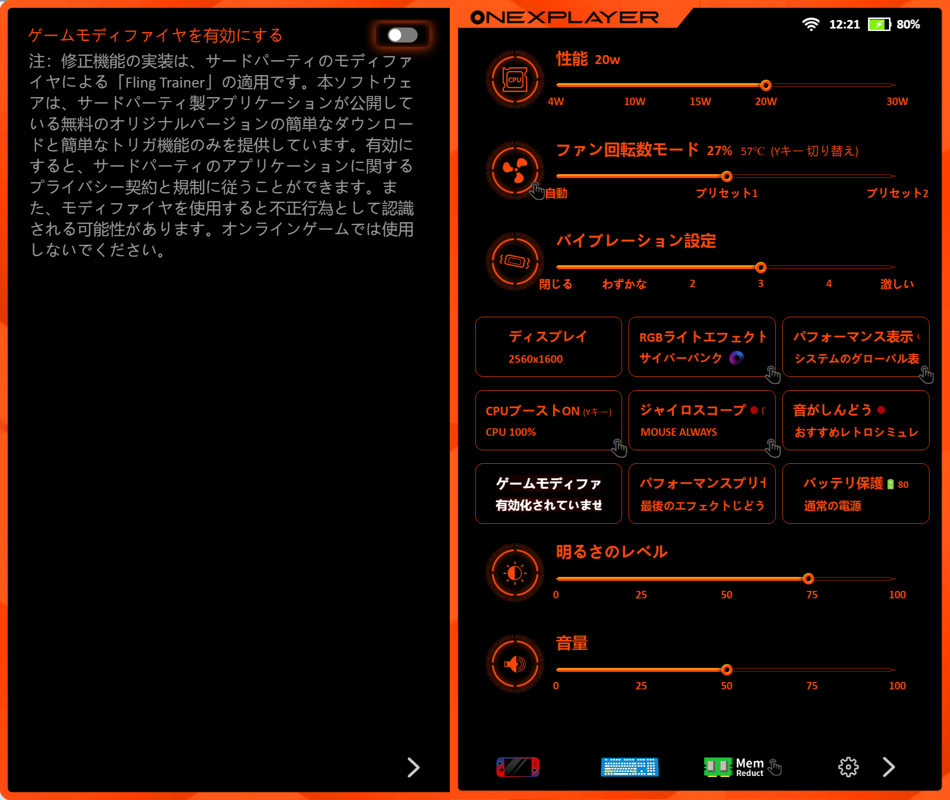 ONEXPLAYER製品には専用の管理コンソール「ONEXCONSOLE」がプリインストールされています。
